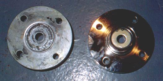 | 18. Since the axles are double drilled for 5 on 4.5" and 5 on 5.5", I pulled the rear axle shafts and reset the studs on 5 on 4.5". This is because I cannot run the Boggers until I get the front axle installed. |